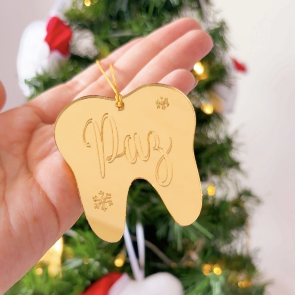 O kit acompanha 8 Pingentes em acrílico dourado, embalados em uma caixinha super fofa.